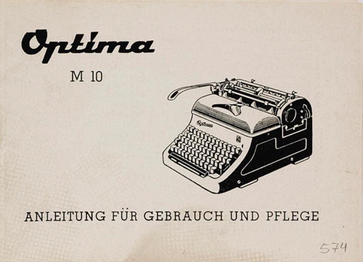 Bedienungsanleitung für Schreibmaschine Optima M 10 Nr. AG 49/409/57/DDR