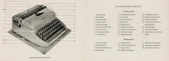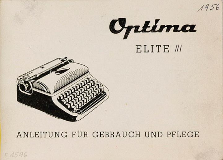 Bedienungsanleitung für Schreibmaschine Optima Elite 3 Nr. D 691 BA 556 Jahreszahl handschriftlich auf Prospekt vermerkt