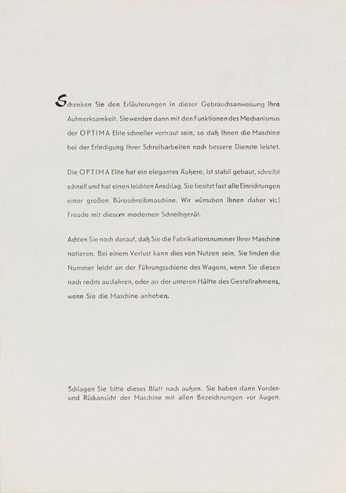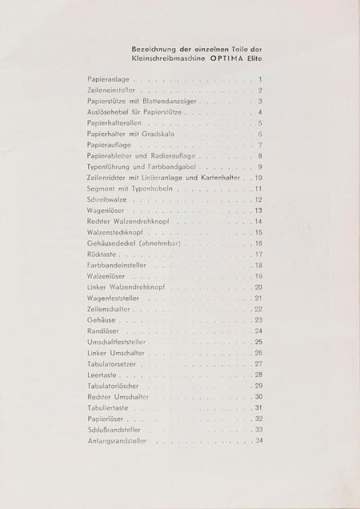 Bedienungsanleitung für Schreibmaschine Optima Elite Nr. D 262 BA 1259