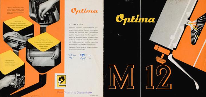 Faltprospekt in finnischer Sprache für Schreibmaschine Optima M 12 Nr. D71 WA 1254