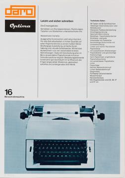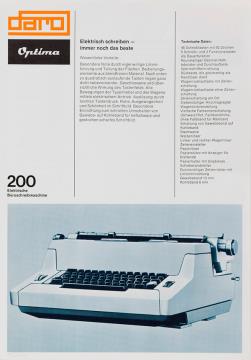 Faltprospekt dreisprachig für Schreibmaschine daro Optima 200