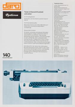 Faltprospekt dreisprachig für Schreibmaschine daro Optima 140