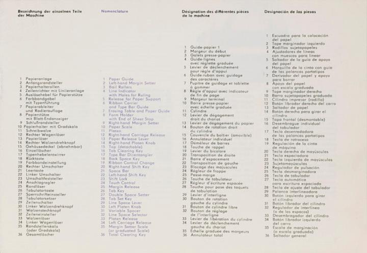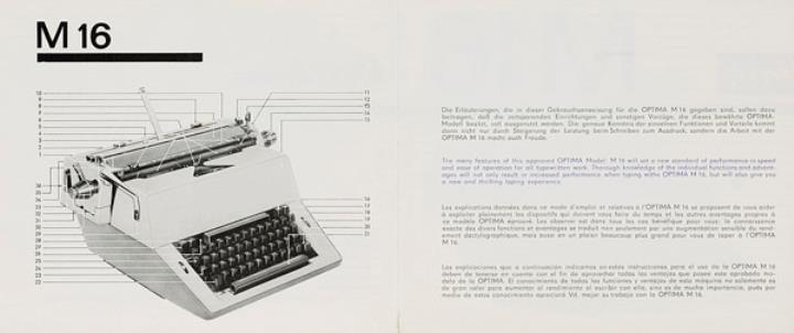 Bedienungsanleitung viersprachig für Schreibmaschine Optima M 16; Umschlagrückseite abgeschnitten