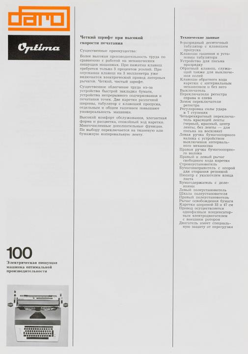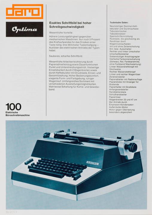 Faltprospekt dreisprachig für Schreibmaschine daro Optima M 100 Electric