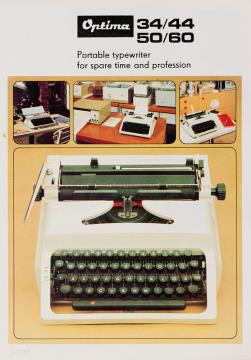 Prospekt für tragbare Schreibmaschine Optima 34/44, 50/60 Portable typewriter for spare time and profession Nr. III-9-4 It/G443/83 (engl.)