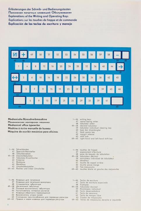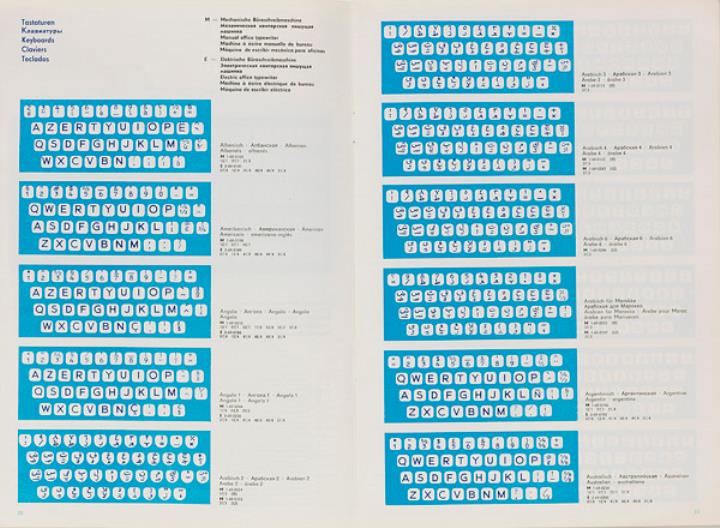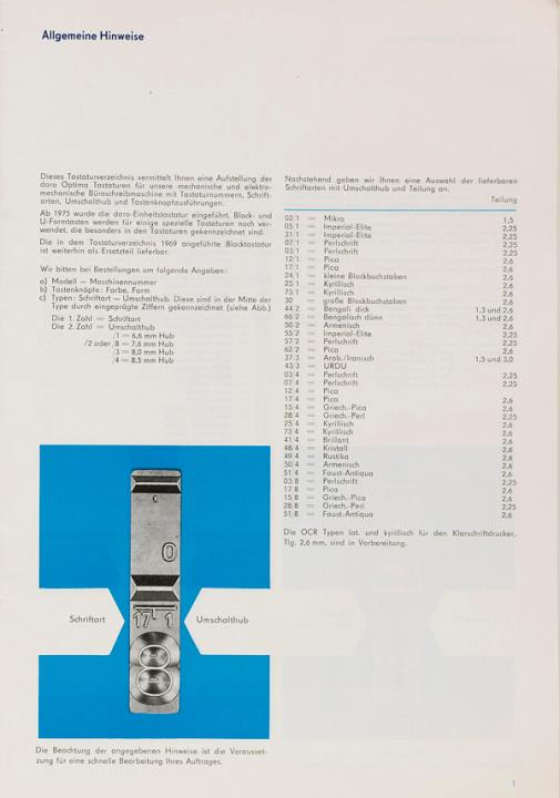 Schriftarten- und Tastaturenverzeichnis fünfsprachig für Schreibmaschine daro Optima Nr. V/4/59 Rs1492/76