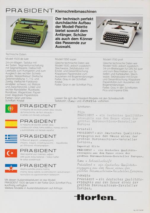 Prospekt für Schreibmaschine Präsident Nr. Ag. 25/134/82