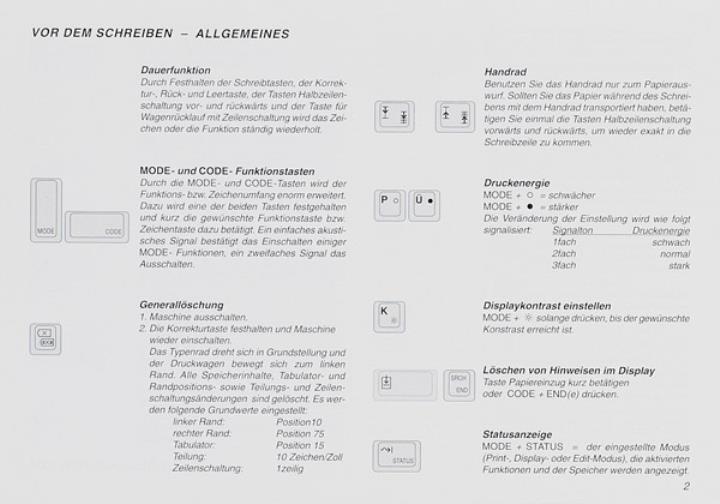 Bedienungsanleitung für elektronische Schreibmaschine Optima SP 24 mit Speicher und Display Nr. 1.68.233718.5/00-24
