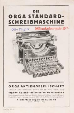 Faltprospekt für Schreibmaschine Orga Standard Nr. 2014.IX.26
