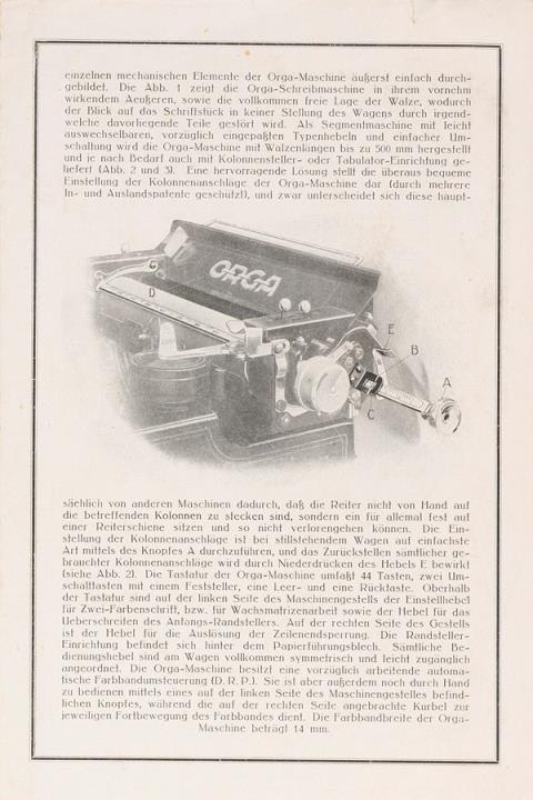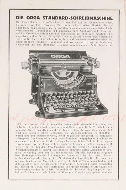 Faltprospekt für Schreibmaschine Orga Standard Nr. 2014.XII.25