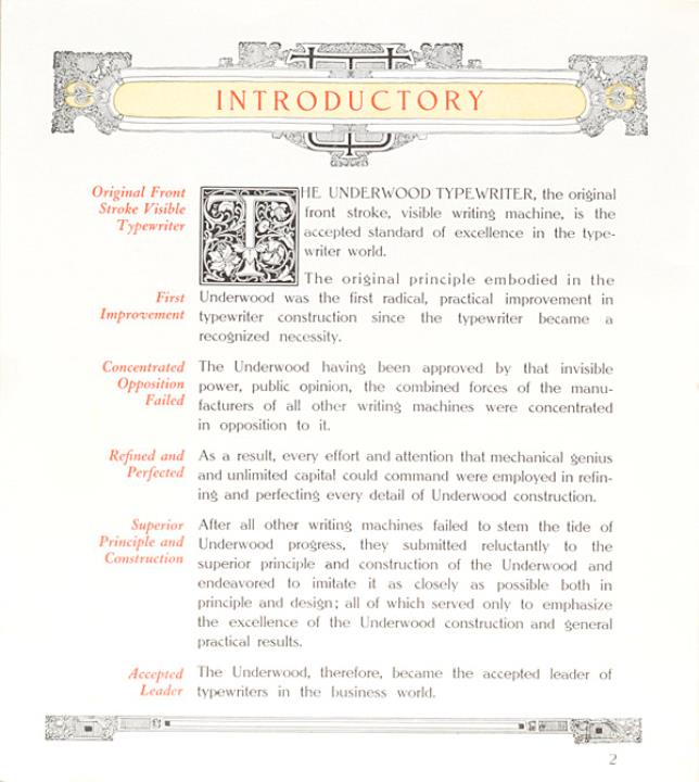 Prospekt und Bedienungsanleitung für Schreibmaschine Underwood The machine you will eventually buy