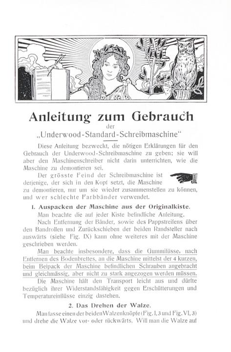 Bedienungsanleitung für Schreibmaschine Underwood Nachdruck