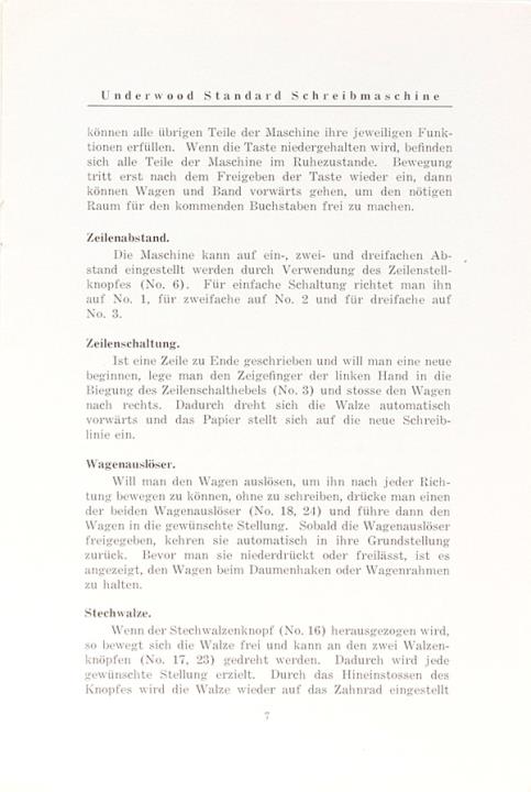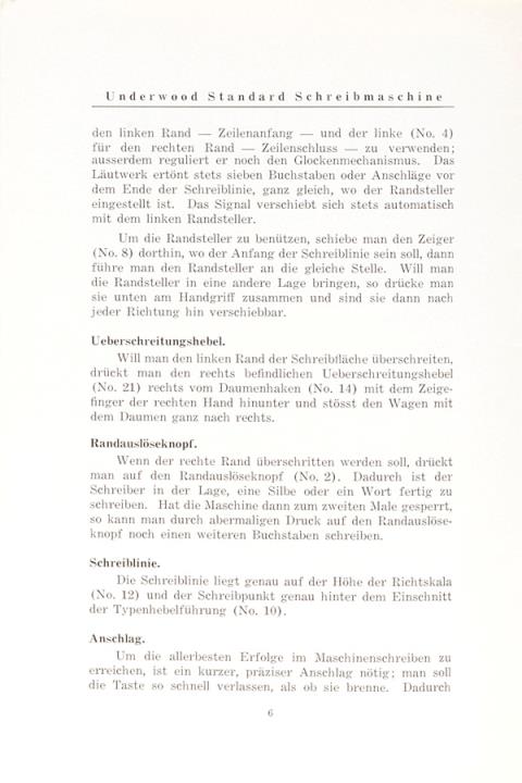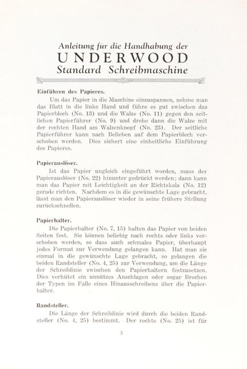 Anleitung für die Handhabung der Underwood Standard Schreibmaschine