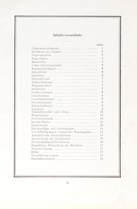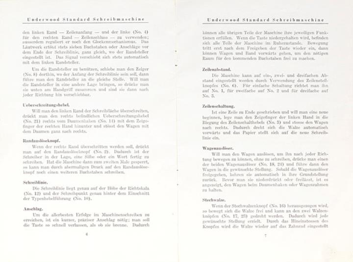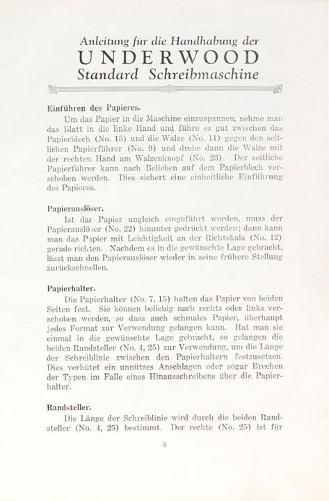 Anleitung für die Handhabung der Underwood Standard Schreibmaschine
