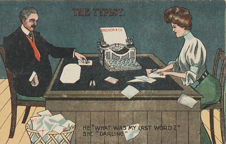 Büro, Schreibmaschine, Frau, Sekretärin, Mann, Gender, Humor