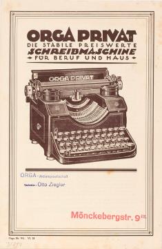 Prospekt für Schreibmaschine Orga Privat Die stabile preiswerte Schreibmaschine für Beruf und Haus