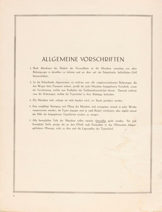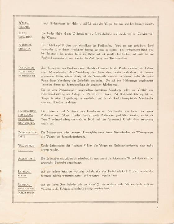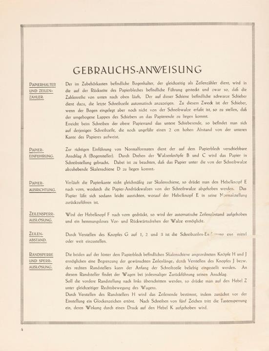Gebrauchsanweisung für die Orga Schreibmaschine