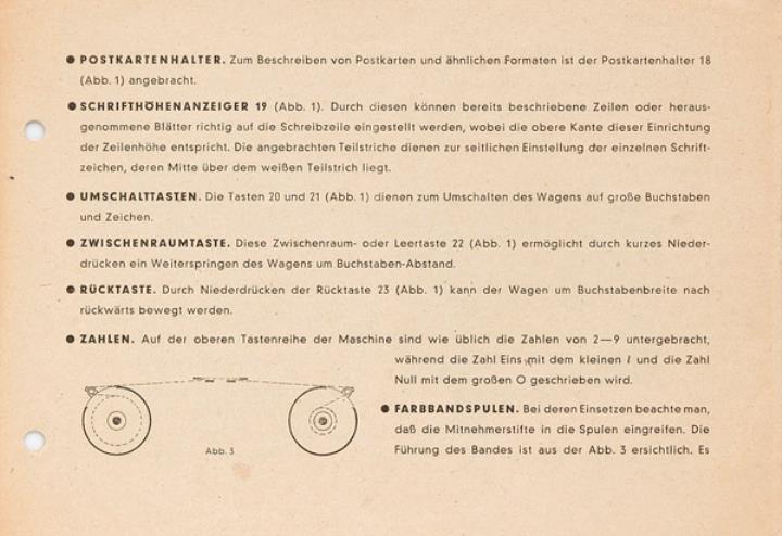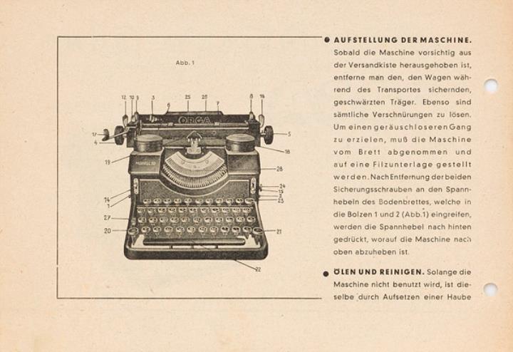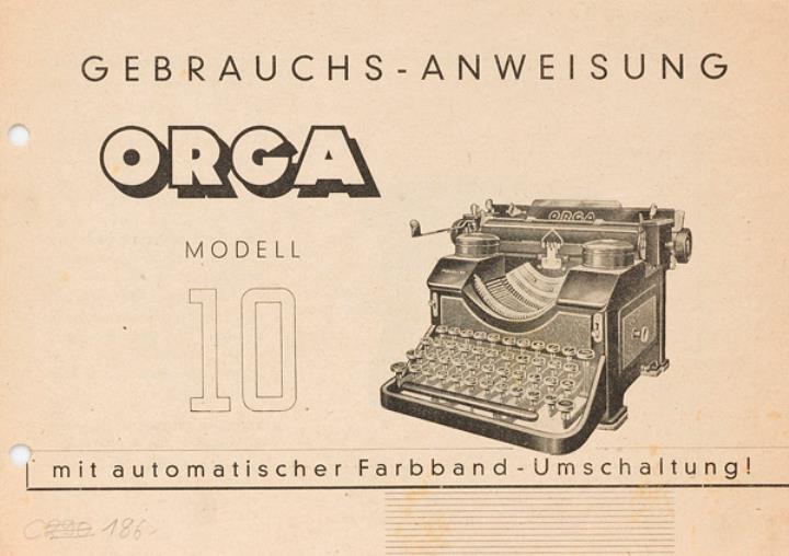 Bedienungsanleitung für Schreibmaschine Orga 10 mit automatischer Farbband-Umschaltung, zwei Exemplare (eines fotokopiert/gebunden)