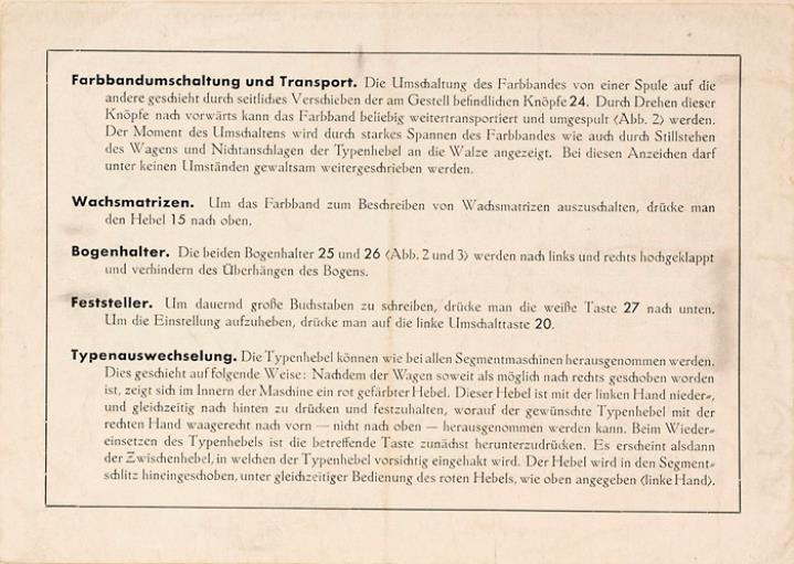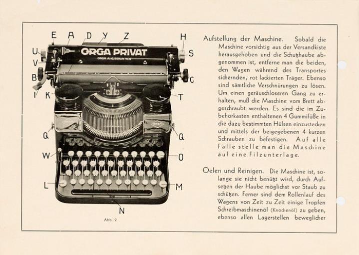 Next to literature on the history of technology, of the typewriter and the office, the Archive holds patent letters, textbooks and instruction manuals as well as historical postcards, letters, photographs and various kinds of advertising (leaflets and brochures, advertising stamps, newspaper ads, posters and signs, promotional gifts).