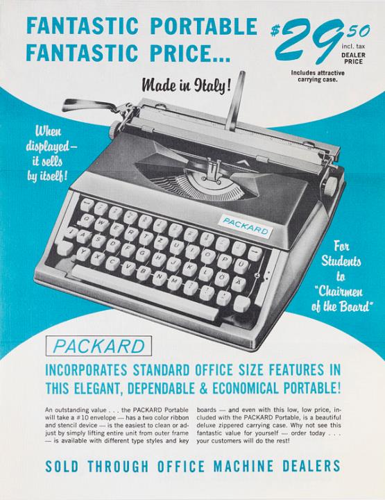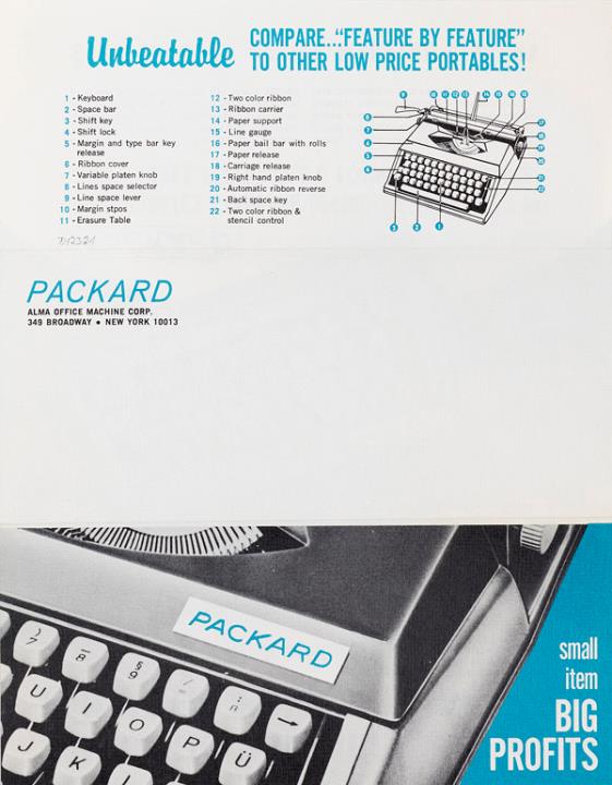 Faltprospekt für tragbare Schreibmaschine Packard