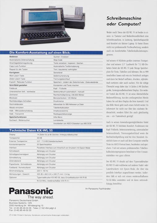Prospekt für Computerschreibmaschine Panasonic KX-WL 55 Nr. 5/1992