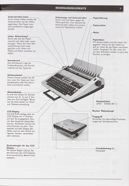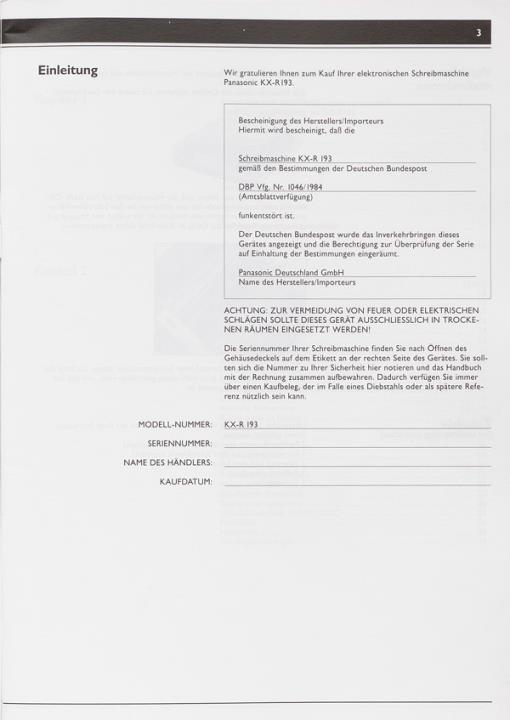 Bedienungsanleitung für elektronische Schreibmaschine Panasonic KX-R 193 Nr. PJQX5875ZA-UK