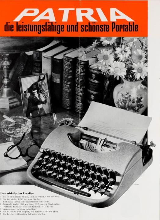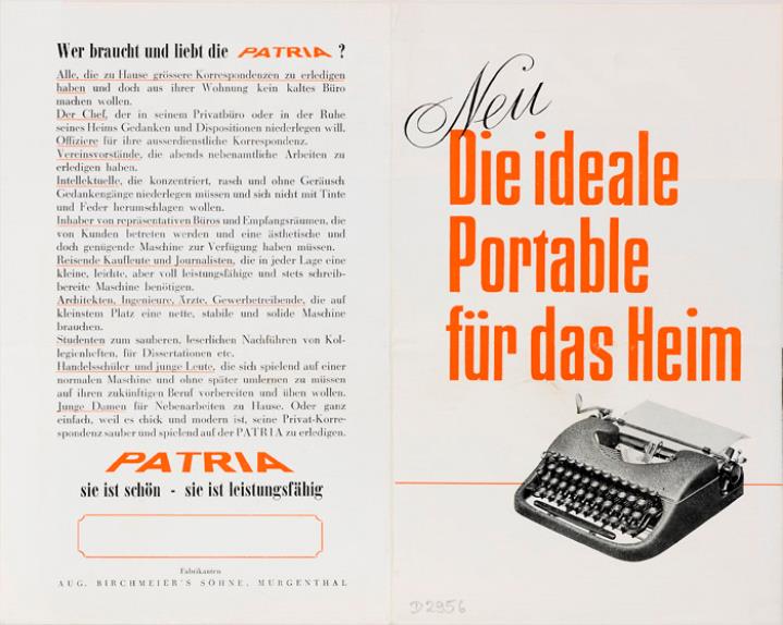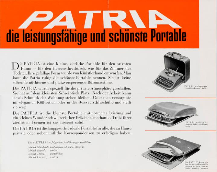 Faltprospekt für tragbare Schreibmaschine Patria