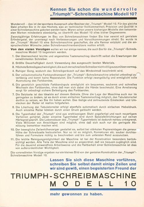 Prospekt für Schreibmaschine Triumph 10 Nr. 2040