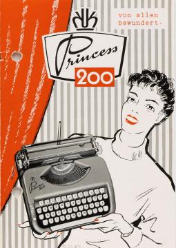 Faltprospekt für Schreibmaschine Princess 200 Datum handschriftlich vermerkt