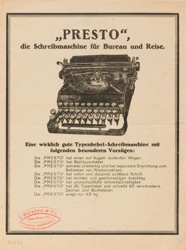 Next to literature on the history of technology, of the typewriter and the office, the Archive holds patent letters, textbooks and instruction manuals as well as historical postcards, letters, photographs and various kinds of advertising (leaflets and brochures, advertising stamps, newspaper ads, posters and signs, promotional gifts).