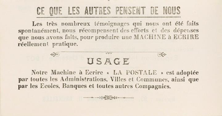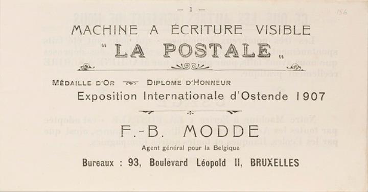 Next to literature on the history of technology, of the typewriter and the office, the Archive holds patent letters, textbooks and instruction manuals as well as historical postcards, letters, photographs and various kinds of advertising (leaflets and brochures, advertising stamps, newspaper ads, posters and signs, promotional gifts).