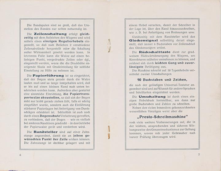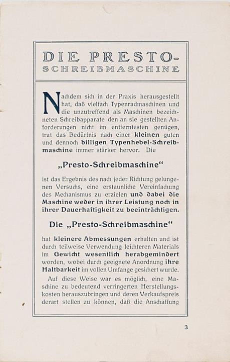 Prospekt für Schreibmaschine Presto Nr. F.118.a.C.5000.3.14