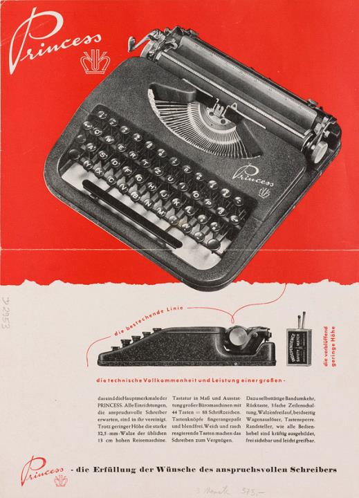Faltprospekt für tragbare Schreibmaschine Princess Nr. Kle.10000.1248.P101