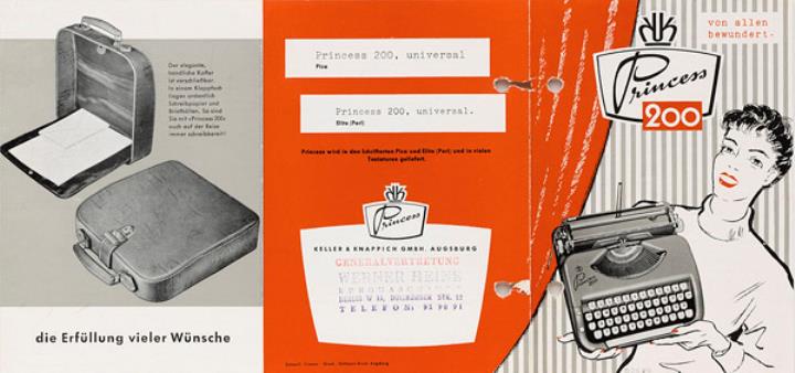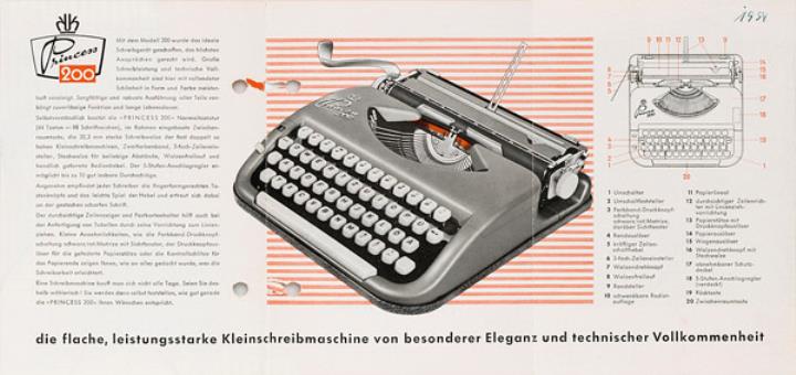 Faltprospekt für Schreibmaschine Princess 200 Datum handschriftlich vermerkt