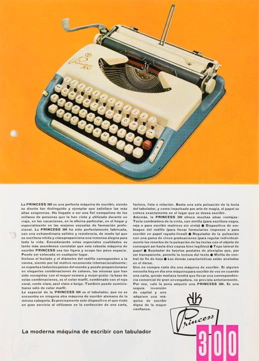 Faltprospekt in spanischer Sprache für Schreibmaschine Princess 300 Nr. 2621-9246 KA