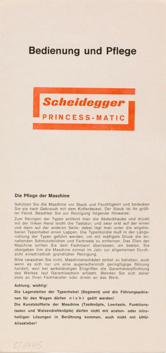 Bedienungsanleitung für Schreibmaschine Princess-Matic Nr. 057-4/566 BSG 10