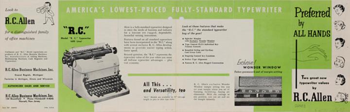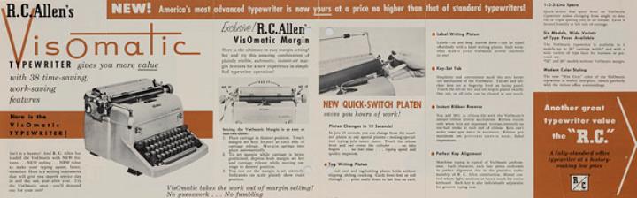 Faltprospekt für Schreibmaschine R. C. Allen Visomatic und R.C. Nr. T67 50M953