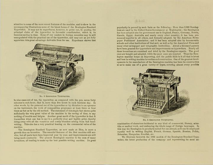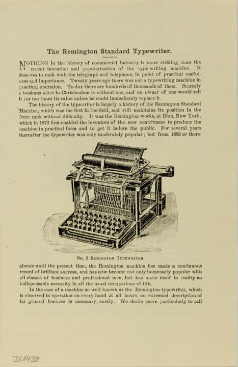 Next to literature on the history of technology, of the typewriter and the office, the Archive holds patent letters, textbooks and instruction manuals as well as historical postcards, letters, photographs and various kinds of advertising (leaflets and brochures, advertising stamps, newspaper ads, posters and signs, promotional gifts).