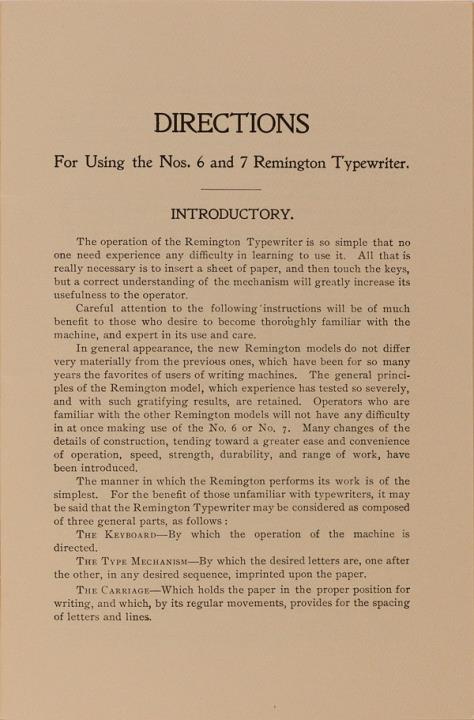Directions for using the Remington Standard Typewriter Models Nos. 6 and 7