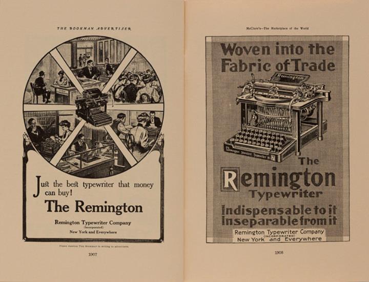 Next to literature on the history of technology, of the typewriter and the office, the Archive holds patent letters, textbooks and instruction manuals as well as historical postcards, letters, photographs and various kinds of advertising (leaflets and brochures, advertising stamps, newspaper ads, posters and signs, promotional gifts).
