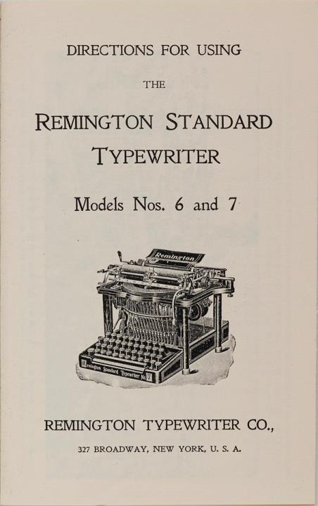 Directions for using the Remington Standard Typewriter Models Nos. 6 and 7