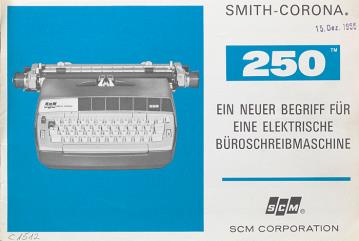 Prospekt für elektrische Schreibmaschine Smith-Corona 250/250 L Vollautomatischen Schreibkomfort in jedes Büro... Nr. 1050L 75 Datum handschriftlich vermerkt