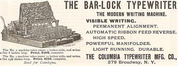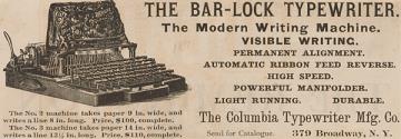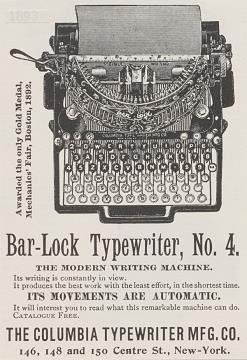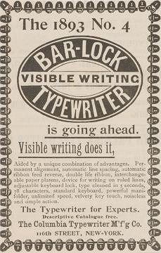 The 1893 No. 4 Bar-Lock visible writing Typewriter