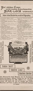 Werbeanzeige für Schreibmaschine Bar-Lock 4 monochrom