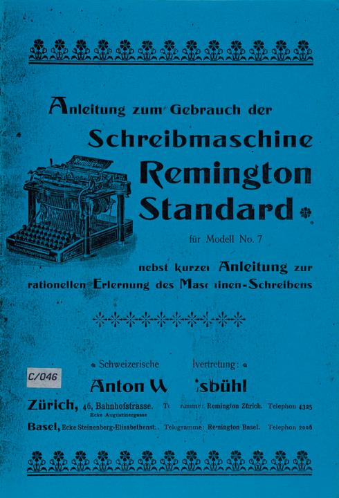 Anleitung zum Gebrauch der Schreibmaschine Remington Standard für Modell No. 7
