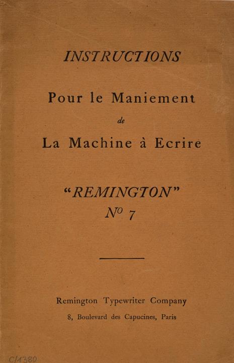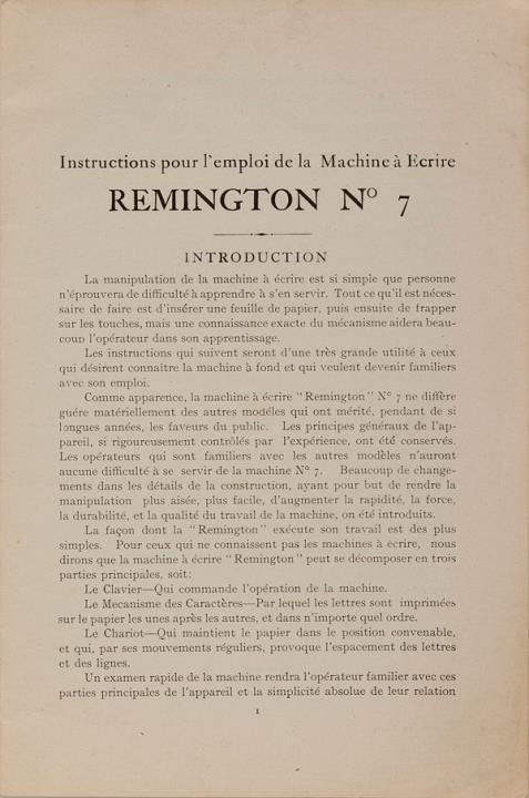 Instructions pour le maniement de la machine à écrire Remington No. 7