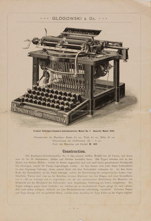 Next to literature on the history of technology, of the typewriter and the office, the Archive holds patent letters, textbooks and instruction manuals as well as historical postcards, letters, photographs and various kinds of advertising (leaflets and brochures, advertising stamps, newspaper ads, posters and signs, promotional gifts).