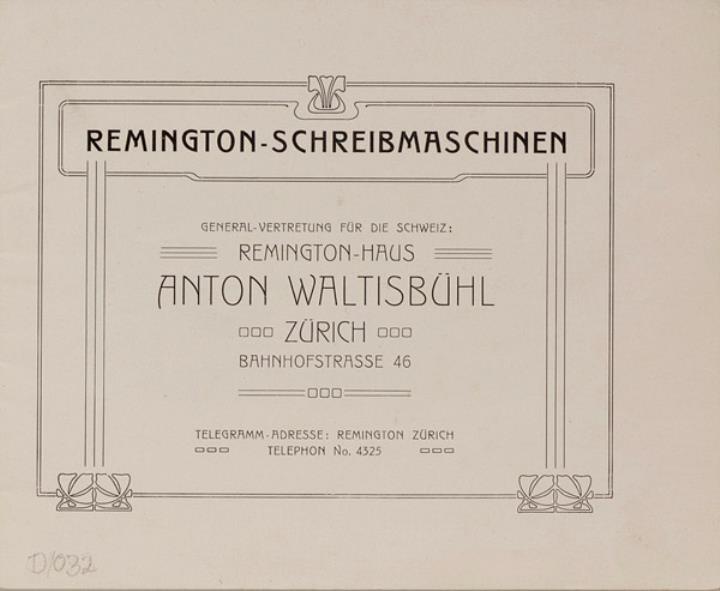 Prospekt für Schreibmaschine Remington General-Vertretung für die Schweiz: Anton Waltisbühl, Zürich