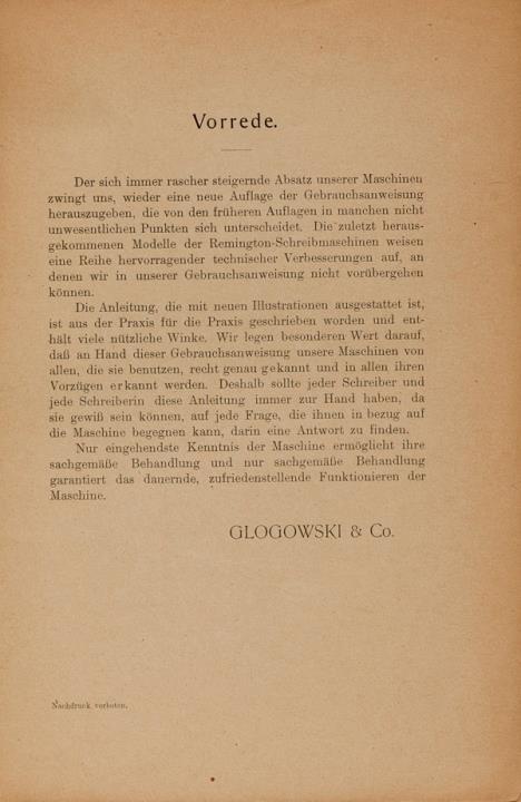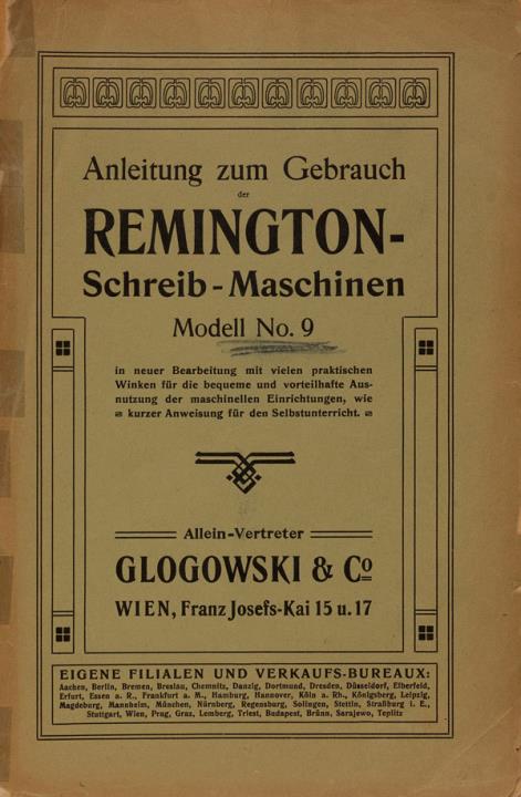 Anleitung zum Gebrauch der Remington-Schreib-Maschinen Modell No. 9