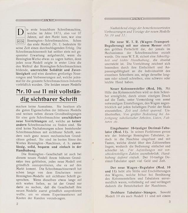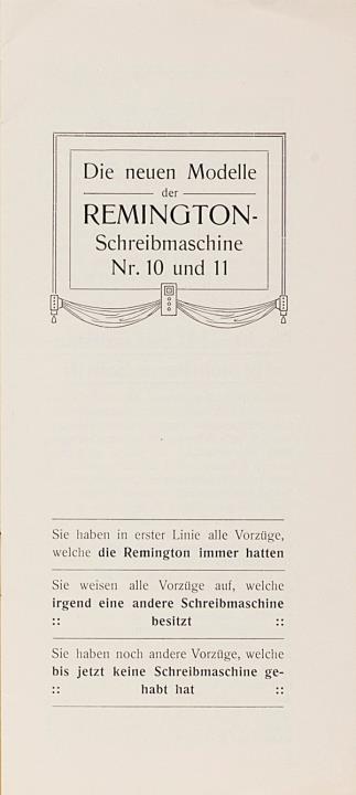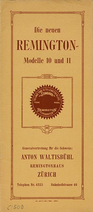 Bedienungsanleitung für Schreibmaschine Remington 10 und 11 Generalvertretung für die Schweiz: Anton Waltisbühl, Zürich